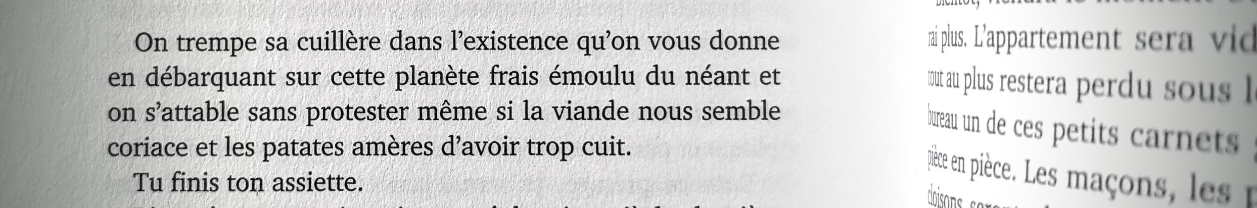Le 3 janvier 2020, je me réveille au bruit d’un chantier qui bat son plein à l’étage supérieur. Sur mon portable, un message de la maison de retraite. Une voix d’homme m’informe que ma mère est décédée paisiblement à sept heures. J’ai entendu dire que dans les quelques minutes précédant notre mort le cerveau produisait assez d’endorphines pour nous accorder un peu d’euphorie avant la culbute. Une sorte de cadeau d’adieu à celui dont il a été si longtemps partenaire.